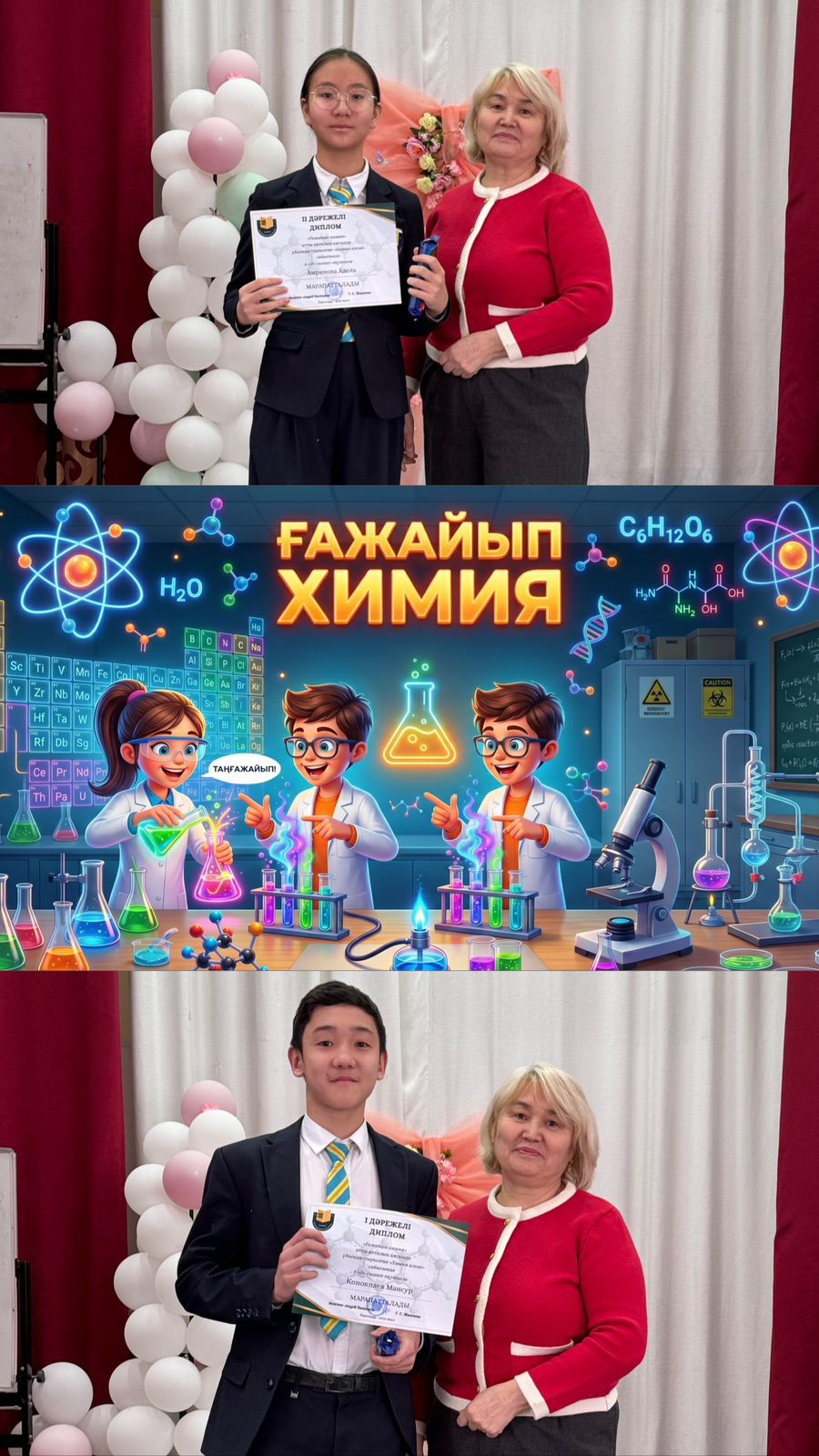13–17 сәуір аралығында өткен «Ғажайып химия» химия апталығы аясында белсенді қатысып, ерекше көзге түскен сыныптар мен оқушылар марапатталды.Жеңімпаздарды шын жүректен құттықтаймыз! Сәуір 20, 2026 Сәуір 27, 2026