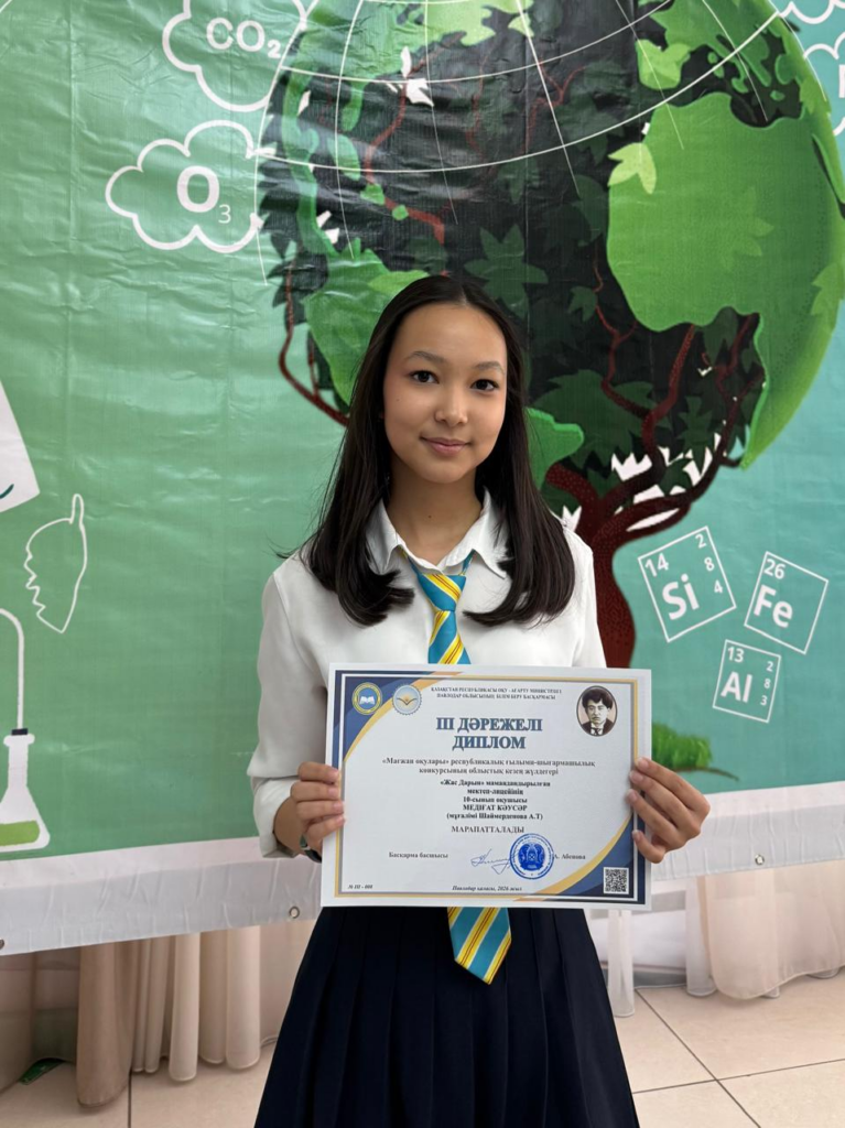 2026 жылғы 14 сәуірде 7–11 сынып оқушылары арасында Республикалық «Мағжан оқулары» байқауының облыстық кезеңі өтті. Сәуір 14, 2026 Сәуір 17, 2026 “Ақын да бір бала ғой айға ұмтылған” – жас ақындар сайысыбағыты бойынша Медіғат Кәусәр🥉3-орынды иеленді. Жетекшісі: Шаймерденова А.Т.
