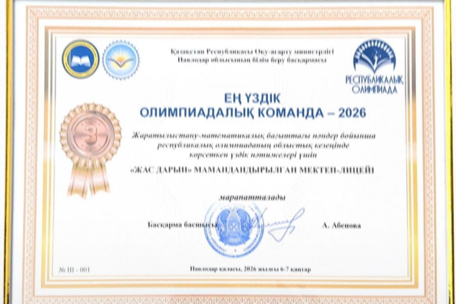 2026 жылғы 6-8 қаңтар аралығында өткен жалпы білім беретін пәндерден Республикалық олимпиаданың облыстық кезеңінде лицейіміздің командасы жаратылыстану-математикалық бағытында ІІІ орынға ие болып, “Үздік олимпиадалық команда” атанды!Құттықтаймыз!!!💐Қаңтар 8, 2026Наурыз 16, 2026