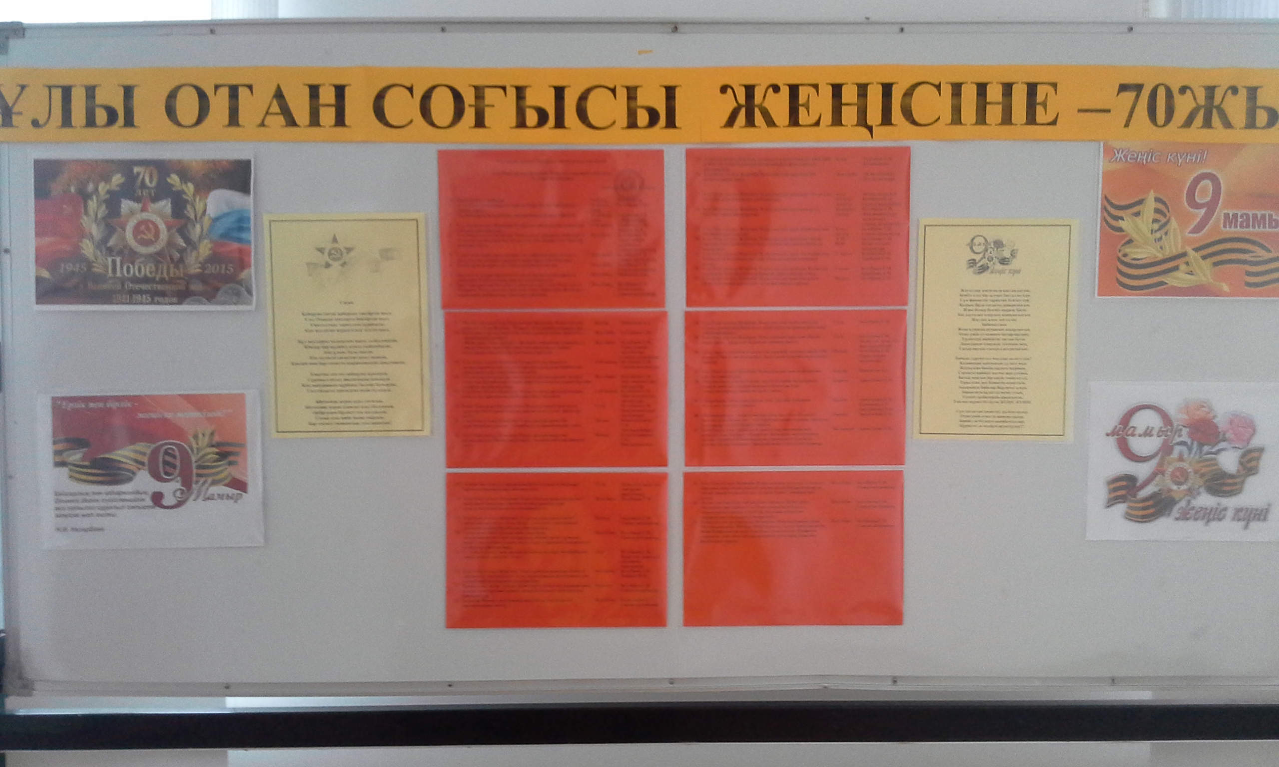 Ұлы жеңістің 70-жылдығына арналадыМектепте оқушылар арасында Ұлы жеңістің 70-жылдығына арналған суреттер мен шығармалар көрмесі ұйымдастырылды |