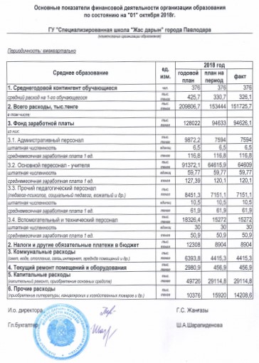 Основные показатели финансовой деятельности организации образования по состоянию на 1 октября 2018 г Қазан 1, 2018 Ақпан 18, 2026