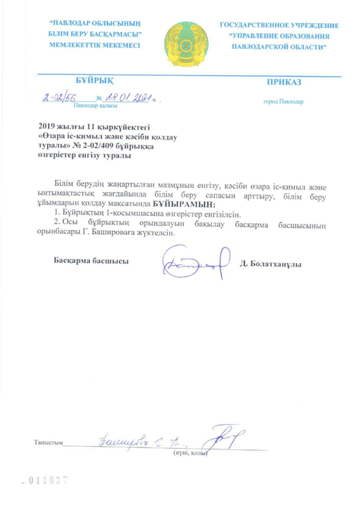 Өзара іс-қимыл кәсіби қолдау туралы бұйрық
