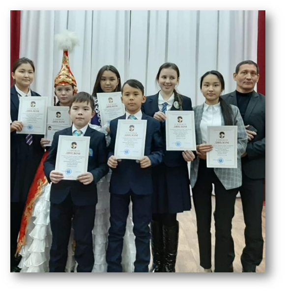 1 орында – 13 оқушы, 3 орында – 5 оқушы, Құрмет грамотасы 1 оқушы, атап айтқанда