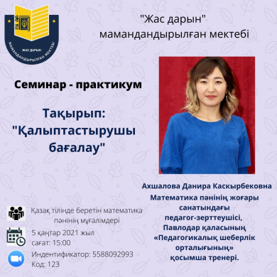 Мұғалімдердің нәтижеге қол жеткізу үшін, оқушының уәжін көтермелеу арқылы оқыту сапасын жақсарту, білім алушылардың мүмкіндігін анықтауға, дер кезінде оқу үдерісін түзету үшін қалыптастырушы бағалау заңдылығын ұғындыру мақсатында Жас Дарын мамандырылған мектебінің математика пәнінің жоғары санатындағы педагог-зерттеуші Ахшалова Данира Қасқырбековна математика пән мұғалімдеріне семинар-практикум өткізді.